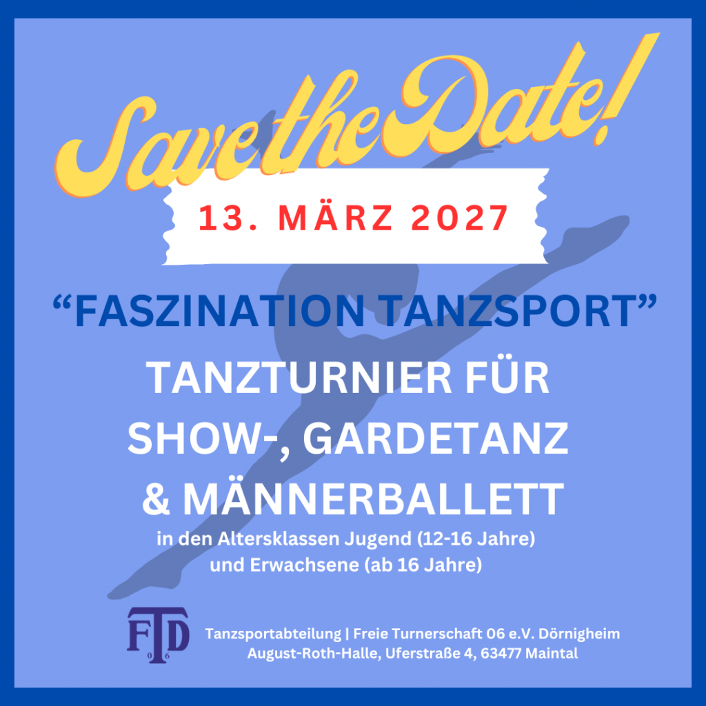 Die Tanzsportabteilung der Freien Turnerschaft 06 e.V. Dörnigheim blickt auf ein rundum gelungenes Tanzturnier am 14. März 2026 zurück. Zahlreiche Gruppen aus der Region präsentierten in verschiedenen Kategorien ihr Können und sorgten für einen abwechslungsreichen und stimmungsvollen Turniertag. Bei traumhaft sonnigem Wetter wurde in der August-Roth-Halle in Dörnigheim sowohl am Mittag beim Jugendturnier als auch am Abend bei den Erwachsenen Tanzsport auf hohem Niveau geboten. Auch die Verpflegung im Saal trug zur rundum positiven Atmosphäre der Veranstaltung bei.
